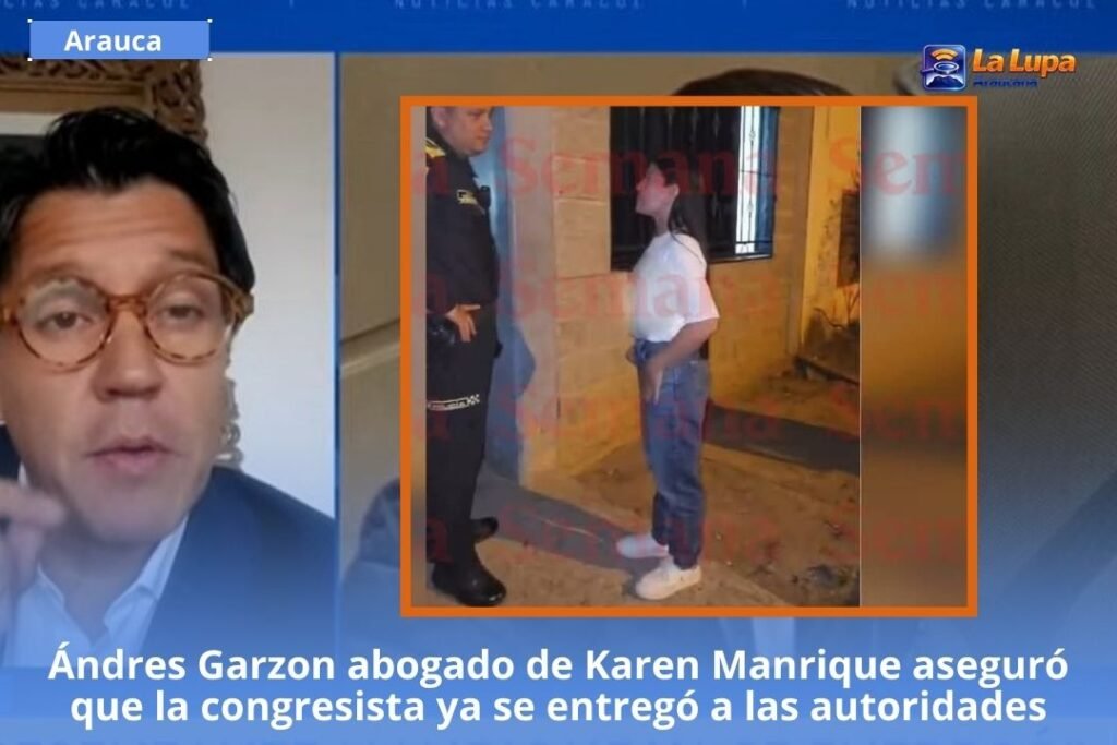 El abogado Andrés Garzón, defensor de la representante a la Cámara Karen Manrique, confirmó en entrevista con Noticias Caracol que la congresista ya se presentó ante las autoridades en el departamento de Arauca.